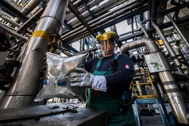 Mintát vesznek a gázból a Mol Nyrt. százhalombattai Dunai Finomítójában 2017. május 19-én. MTI Fotó: Szigetváry Zsolt