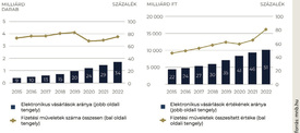 A tranzakciók száma és értéke, valamint az elektronikus tranzakciók aránya az online pénztárgéppel lefedett szektorokban