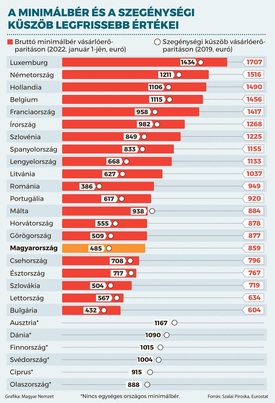 Európai minimálbér a magyar minimálbér az Európai Unió legkisebb keresetre vonatkozó irányelvjavaslata szerint – hangsúlyozta a Magyar Nemzetnek Szalai Piroska munkaerő-piaci szakértő. Emlékeztetett: Brüsszel irányelvének legfontosabb célkitűzése, hogy aki dolgozik, ne legyen kitéve a szegénység kockázatának. A kötelező legkisebb bér nettó összegének tehát magasabbnak kell lennie, mint a szegénységi küszöbérték, ennek a kritériumnak pedig magabiztosan megfelel a magyar minimálbér.Teljesíti a magyar minimálbér azokat a kritériumokat, amelyeket Brüsszel a tisztességes minimálbérekre vonatkozó, elfogadás előtt álló irányelvjavaslatában meghatározott. Ez tehát azt jelenti, a magyar minimálbérre már most igaz, hogy egyben európai minimálbér is – hangsúlyozta a Magyar Nemzetnek Szalai Piroska munkaerő-piaci szakértő.