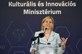 Varga-Bajusz Veronika felsőoktatásért, szak- és felnőttképzésért, fiatalokért felelős államtitkár az országos vállalkozásfejlesztési roadshow indulásáról tartott sajtótájékoztatón a Kulturális és Innovációs Minisztériumban 2025. szeptember 16-án