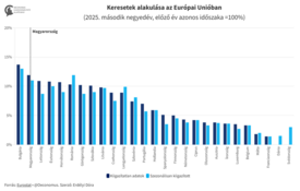 Az Eurostat szerint 2024-ben Magyarországon 10%-kal emelkedtek a nominális keresetek, ami a nyolcadik legmagasabb érték volt az EU-27 tagállamában. 2025 második negyedévében pedig 11,9%-os éves növekedést regisztráltak, ezzel hazánk a második helyen állt az uniós rangsorban.