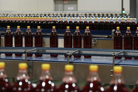 Üdítõitalok haladnak a futószalagon a hetedik alkalommal megrendezett Modern gyárak éjszakája országos programsorozat nyitó eseményének helyszínén, a Márka Üdítõgyártó Kft. üzemében Felsõlajoson 2023. november 10-én.