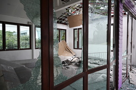 Kambodzsából kilőtt rakéta becsapódásának nyomai a thaiföldi Phanom Dong Rak körzet kórházának területén