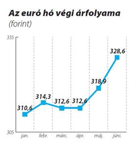 Négy év stabilitás után elvált a forint a 2014-ben kialakult 310 körüli euróárfolyamtól. Az MNB statisztikái szerint az euró ára május végére 319 forintra emelkedett, június végére pedig elérte a 328-as szintet. Július első hete további izgalmat hozott, az árfolyam egy napra a 330-as értéket is elérte, ami történelmi rekordot jelent, innen azonban visszafordult, és a 325-ös szintnél látszik stabilizálódni.