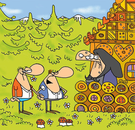 – Nem Jancsi és Juliska, hanem Jancsi és Béluska vagyunk, vén banya!