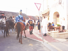 Ha nem tévedek, a Tenkes Hadjárat a Tenkes Lovas Sport, Hagyományőrző és Polgárőr Egyesület Siklósi Huszárbandériumának legjelentősebb és legemblematikusabb rendezvénye. A II. Tenkes Hajáraton esett meg, hogy a Schillinger Tibor vezette vonuló lovasság megérkezett Diósviszlóra, ahol a faluház előtt egy kisebb tömeg várakozott. Ugyanott, ahol az előző évben a Csizik Mihály vezette lovasokat ünnepélyesen fogadták a helybéli előjárók és más illetékesek. Az érkező lovasok szépen felsorakoztak, majd Schillinger parancsnok vezényszavára karddal tisztelegtek az egybegyűltek előtt, hogy aztán egy szabályos díszszemlével kivágják a rezet, és elkápráztassák a kíváncsi megjelenteket. A díszszemle után huszárjaink jelentésbeadáshoz felsorakoztak, és Schillinger parancsnok a feladat végrehajtását befejezendő, jelentést tett Kövesdi Lászlónak, a rendezvény napi felelősének. Az eseményeket egyre nagyobb kíváncsisággal és figyelemmel kísérő tömegből a jelentésbeadás után egy ember megszólalt: mi ám a buszra várunk – magukat meg a polgármesteri hivatal előtt fogadják.