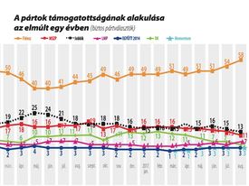 A Jobbik és az MSZP egyaránt visszaesett az egy hónappal ezelőtt mért értékhez képest. A morzsapártok besültek 2-3 százalékra, a DK is visszaesett, csupán az LMP erősödött kissé. A közömbösök aránya ezúttal csak 23 százalék volt.