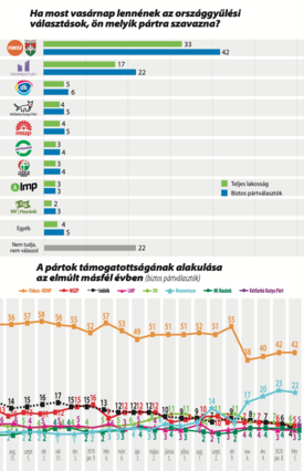 A Fidesz–KDNP továbbra is tartja első helyét, és tartósan második a Momentum, utánuk viszont szinte a megsemmisülés fenyegeti a többi ellenzéki politikai erőt. A Jobbik most először parlamentbe kerülése óta nem jutna át az ötszázalékos küszöbön, de az MSZP, sőt a DK is a veszélyzónában van. A versenyfutás a jelen állás szerint két erős párt között dől el.