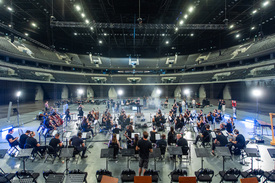 A Depeche Mode Special Tribute koncert első, MVM Dome-ban tartott összpróbáján rögtön egy rekorddal szembesültünk: a koncertre az MVM Dome történetének eddigi legnagyobb színpadát építik fel, ugyanis a Magyar Nemzeti Férfikar negyvenöt énekesével, a Hungarian Studio Orchestra ötven fős művészgárdájával, a live banddel, és a szólistákkal együtt összesen százegyen lépnek majd a közönség elé. A fellépők száma monumentális hangzást ígér, amiből a próbán kaptunk némi ízelítőt: Fehér Lili éppen a Ghosts Again számot énekli nagy átéléssel, a szimfonikus zenekar aláfestése drámai mélységet kölcsönöz a dalnak; az összhatás lenyűgöző.