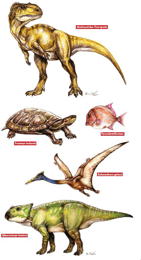 – A folyótól távolabb eső, szárazabb hegyoldalakat valószínűleg a mai délfenyőkkel rokon fák, illetve tulipánfafélék uralták, az ártéri erdőalkotók a mai bükkfafélékkel rokonítható, de már kihalt zárvatermők lehettek, míg közvetlenül a folyóparton akár a csavarpálmák is megjelenhettek – vázolja a dinoszauruszok korának növényvilágát dr. Bodor Emese, a Magyar Földtani és Geofizikai Intézet Gyűjteményi Főosztályának tudományos munkatársa. – A megtalált hanga- és csarabmaradványok pedig szárazabb, sziklásabb hegyoldalakra utalnak, melyek között a ragadozó dinoszauruszok jól tudtak vadászni egy-egy, a kiemeltebb térszíneken is jól mozgó, kecsesebb növényevőre vagy a rengeteg előkerült gyíkra és egyéb apró termetű hüllőre.