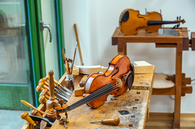 – Húsz évvel ezelőtt Velencében voltam egy kiránduláson. Jártam az utcákat, amikor egyszer csak egy szakállas, hosszú hajú mesterre lettem figyelmes. Egy üvegablak mögött éppen egy Szűz Mária-képet restaurált. Odatapadtam az üvegre, és végignéztem. Hazafelé tartva álmodtam magamnak egy ehhez hasonló műhelyt – emlékszik vissza Sümegi Elemér hegedűkészítő, aki első látványműhelyét 2011-ben nyitotta meg a Szaléziánum Érsekségi Turisztikai Központ udvarának kicsiny épületében.