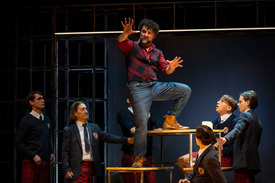 Végh Péter erőteljes, markáns alakítást nyújt a formailag túlnyomórészt udvarias, lényegében azonban csaknem végig fegyelmező igazgató, Mr. Nolan szerepében, aki az általa vezetett intézmény tekintélyénél csak a sajátját tartja fontosabbnak. A Bányai Kelemen Barna által életre keltett Mr. Keatingből ugyanakkor hiányzik az a szenvedély és a rendre meg-megvillanó játékosság, amely Robin Williams megformálásában jellemezte a karaktert. A figura így inkább tűnik szintén útkereső alaknak, mint a maga ösvényére rálelt, felszabadult felnőttnek. A Kálmán Eszter tervezte jelmezek – a fiúk a gimnázium címerével díszített zakót, ugyanakkor skót kockás rövidnadrágot viselnek – remekül érzékeltetik, hogy a kamaszkor és a felnőttkor határán járó szereplőkről van szó. Tihanyi Ildi díszlettervező kulisszái pedig mindenkit meggyőzhetnek arról, hogy egy patinás intézményben játszódó darab esetében sincs szükség a tekintélyt parancsoló épített környezet színpadi megjelenítésére. Elegendő néhány pad és gurítható állvány, amelyek aztán több helyzetben, több funkcióban is szerephez jutnak az előadás során – az állványok olykor az osztályterem falait alkotják, olykor viszont olyan hatást keltenek, mintha a mögéjük zártakat cellában tartó rácsozat volna.