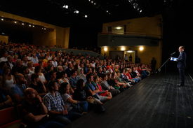 A díszbemutató előtt Juhász Anna irodalmár a színpadon beszélgetett Fazakas Péter rendezővel, valamint a főszereplők közül Hámori Gabriellával és Staub Viktóriával, akikhez később csatlakozott Köbli Norbert író és Kulka János színművész is.