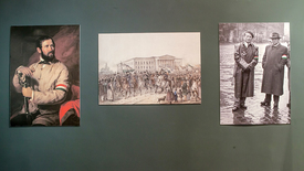 – A Kossuth-kultusz mellett párhuzamosan mindig jelen volt a Petőfi iránt érzett rajongás is, akit a szabadságharc költőjeként és hősi halottjaként az egyik legnagyobb hatású forradalmi szimbólumok között tartanak számon ma is – veszi át a szót a másik kurátor, dr. Kedves Gyula hadtörténész, az Országgyűlési Múzeum igazgatója. – Tisztelete az 1950-es évek első felében pártállástól függetlenül általános volt az országban, így nem véletlen, hogy a forradalom eszmei előkészítése a korabeli értelmiséget tömörítő Petőfi Kör ülésein zajlott le, a Nemzeti Parasztpárt pedig Petőfi Párt néven alakult újjá a forradalom alatt. 1848 népszerűsége és romantikája beleivódott az emberekbe, ráadásul 1956-ban még élénken éltek a centenáriumi ünnepségek emlékei, így evidens volt, hogy a forradalom első perceiben azonnal visszanyúljanak a kommunista diktatúra előtti időszakhoz, az 1949-ben még létező nemzeti jelképeinkhez.