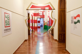 Az első terembe lépve egy hatalmasra nagyított fényképfelvétellel találjuk szemben magunkat. Az 1956-os forradalom első napjaiban járunk Szegeden. A Klauzál tér Kossuth-szobrát körbeveszik a kokárdás tüntetők, a szoborra magyar zászlót erősítettek, talpazatára pedig Kossuth-címert és egy Petőfi-portrét támasztottak. Ez az egyetlen fényképfelvétel magába sűríti mindazt, amiről maga a kiállítás szól. Rajta van a magyar nemzet két legfontosabb jelképe: a címer és a zászló, s ott van Kossuth és Petőfi, akik a nép számára a szabadság és a függetlenség iránti vágy megtestesítői talán máig is.