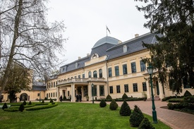 A gyulai Almásy-kastély 2021. április 28-án. A kastély barokk tömbjét Harruckern Ferenc alakította ki, majd unokája, Wenckheim Ferenc nemesi rezidenciává bővítette az épületet.