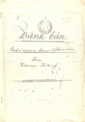 Bánk bán címlapja a szerző kéziratával és a szereplők a szerző kéziratában. Forrás: Wikimedia Commons