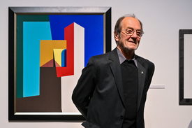 Aknay75 címmel nyílt kiállítással köszöntötték Aknay János festőművészt születésnapja alkalmából a szentendrei MANK Galériában pénteken.