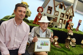 A hétfői eseményen jelen volt Bodrogi Gyula mellett Takács Vera, a sorozat dramaturgja és Lévai Balázs, Lévai Sándor bábtervező fia.