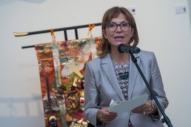 Lévai Anikó hangsúlyozta: ezeken a míves ruhákon minden mintának, formának, színnek jelentése van, és minden jelentés sokrétű. Ezek a szimbólumok a nyugati ember számára titkosak, most azonban feltárulnak a látogató előtt – méltatta a Japán antik gyermekkimonók címmel megnyílt kiállítást Lévai Anikó.