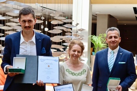 2024. évi Balaton-díjasok. Vollein Ferenc, Bartos Erika meseíró és Dr. Simon Attila, a Herendi Porcelán Manufaktúra Kft. vezérigazgatója