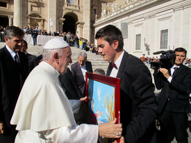 – A hagyományos színelmélet helyett új színkeverési technikákat, színkombinációkat és árnyalatot próbálok meg kialakítani. Ötven-hatvan alapszínnel dolgozok, számomra külön színnek számít például az azúr-, a kobalt-, az ultramarin- vagy a türkizkék. Ezeket egymással soha, kizárólag a fehérrel keverem, lágyítom, melynek köszönhetően képeimen mintegy 300-500 színárnyalatot tudok létrehozni. A témáknál a változatosságra törekszem, miközben persze a Balaton áll hozzám a legközelebb. Nagyon sok mondát olvastam el a tóról, amelyeket sorra meg is festettem, így nekem van a legteljesebb, mintegy harminc balatoni legendát feldolgozó festmény-sorozatom – mondja, és példaként már mutatja is galériájának falán azt a négy festményt, amely Dúl Veronika tragédiáját, a Balatonudvariban ma is látható szív alakú sírkövek keletkezésének történetét meséli el. – De mivel nagymamám hitoktató volt, ugyanígy gyermekkoromtól kezdve velem van a hit, az Ó- és Újszövetség, Jézus, Szűz Mária és a szentek világa. Különösen büszke vagyok arra, hogy a Szent Márton év alkalmával 2016 októberében pápai audencián Rómában fogadott a Szentatya, I. Ferenc pápa, akinek személyesen adhattam át a „Szent Márton megkereszteli édesanyját” című alkotásomat, amely így bekerült a Vatikáni Múzeum-és Képtár pápai magángyűjteményébe is.