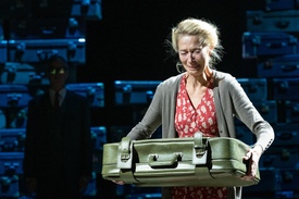 Ez a megoldás egyfelől felhívja a figyelmet, milyen súlyos az a két bőrönd, amelyeket Willy Loman az első jelenetben cipel: egy lassan véget érő karrier és egy kisszerű élet valamennyi kötöttsége, tévesztése, szerepjátszása és hazugsága adja a súlyukat. Másfelől érzékelteti, hogy ha nem foglalkozunk velük, a magunk előtt görgetett vagy magunk után vonszolt terhek – meg nem oldott problémák, kibeszéletlen konfliktusok – túlnőnek rajtunk, megakadályozva, hogy bármi érdemit kezdjünk magunkkal vagy az életünkkel. A Papp Janó által tervezett jelmezek ugyanakkor realisztikusak, korfestőek.