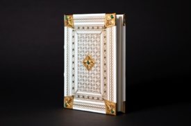 Azt írják, a Ferenc pápa számára készült különleges példány aranyozott rézveretekkel és cabochon (gömbölyített előlapú) krizopráz kövekkel díszített, aranyozott fehér bőrkötéses díszmásolat, amelyhez latin, magyar és angol nyelvű kísérőkötet társul.