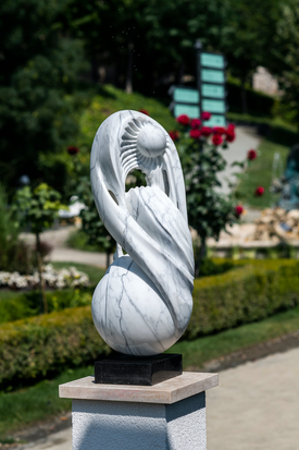 – A szoborfaragás olyan, mint a zeneszerző munkája. Ő megírja ugyan a művet, ám ahhoz, hogy az valóban kész legyen, kell egy karmester, aki összeszedi a zenészeket. Kellenek a hosszú próbák, hogy végül aztán felcsendülhessen a muzsika. A kotta még nem elég, kellenek a hangok. Miként a kész zenemű útja a hangjegyektől a hangversenyteremig tart, úgy a műteremből induló szobornak is meg kell érkeznie valahová, ahol láthatják. Számomra most jött el a pillanat, hogy megmutassam őket a közönségnek. Azért, hogy ezt itt a Várkert Bazár Neoreneszánsz kertjében tehetem meg, különösen is hálás vagyok! Mert a szobroknak nagyon fontos a fény. A műteremben is folyamatosan viszem tovább a lámpát, hiszen az íves forma nagyon igényes. Lehet, hogy szemből jól mutat, de, ha elmegy a súrlófény, a hibák előjönnek. Itt, a szabad ég alatt, ahogyan a Nap halad az égen, a szobrok mindig más és más megvilágításba kerülnek.