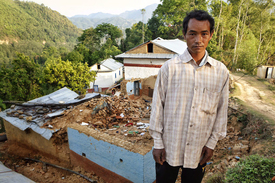 Fehér Bertalan: Ram Nagarkoti áll megsemmisült otthona előtt Katmanduban a 2015-ös nepáli földrengés után