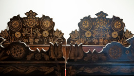 Kalotaszegi motívumokkal díszített ágy a Bartók csendje című állandó kiállításon a budapesti Bartók Béla Emlékházban a megnyitó napján, 2024. november 22-én