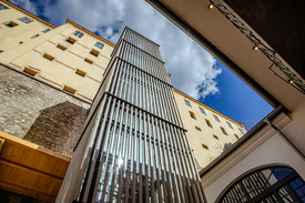 A veszprémi vár sziklafalának tövében, a Ruttner kereskedőcsalád Jókai utcai lakóházának udvarán állunk. Innen indul az a panorámalift, amely az egykori várbörtön mínusz harmadik szintjére, az Ember a rács mögött című új, állandó kiállítás helyszínére visz bennünket. A hosszú folyosóról nyíló aprócska cellákat ugyan 2003-ban az utolsó lakó is elhagyta, ám a hangulat még most, több mint húsz év elteltével is nyomasztó. Szürkére festett falak, mesterséges fények és különös zajok veszik a körül a látogatót, aki miután alkalmazkodik a bezártsághoz, és végigjárja az egyes börtöncellákat, másképp tekint majd saját szabadságára. Vajon igaza volt-e Dosztojevszkijnek, amikor úgy vélte, hogy „egy társadalmat nem az alapján kell megítélni, hogy hogyan kezeli a kiemelkedő polgárait, hanem az alapján, hogy hogyan bánik a bűnözőivel”?
