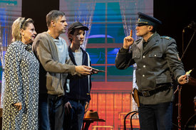 A legötletesebb megoldás alighanem három szám egybefűzése, minitrilógiává alakítása. Ennek elején egy rövidnadrágos kisdobos – Katona Péter Dániel – A 424-est énekelve mesél arról, hogy édesapja fűtő. Az őt hallgató bizottság vezetője azonban nem találja eléggé lelkesnek, ezért utasítja, hogy kezdje elölről. A fiatalember ismét nekifog tehát, és olyannyira tűzbe jön, hogy földhöz vágva szemüvegét energikus táncba kezd – aminek láttán nem nehéz az AC/DC-ből ismert Angus Young hasonló produkciójára gondolni.