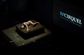 Óbudán, egy átalakított gyárépületben rendezett be próbatermet a Recirquel társulat. A többemeletnyi magas mennyezetről trapézok, karikák, különféle drótszerkezetek, kötelek lógnak alá. Persze a földön is megannyi cirkuszi eszköz: hatalmas légkerék, kínai rúd, gumiszőnyegek és egy aprócska, földdel borított színpad, amely egy későbbi produkcióban jut majd fontos szerephez. A próbaterem egyik sarkában hófehér makett áll: a FINA vizes-vb záróünnepségének látványképe, amelyben a Recirquel kétszáz artistát és táncost megmozgató, a csodaszarvas legendáját megidéző produkciója volt látható. A fal mellett az egyik előadásban használt, óriásnak is kényelmes, hatalmas fotel terpeszkedik, mellette ruhatartó állvány bodor tüllökkel, púderszínű, merevítős fűzőkkel, fodros nyakravalókkal. Első pillantásra ezek a rokokó és a századforduló stílusából merített, groteszk módon eltúlzott jelmezek lehetnének akár egy újraálmodott klasszikus színházi darab kosztümjei is – ha nem ácsorogna az állvány alatt egy bumfordi, ormótlan méretű bohóccipő.