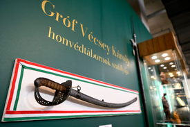 Gróf Vécsey Károly aradi vértanú szablyája az Art and Antique Budapest művészeti vásár sajtóbejárásán a Bálna rendezvényközpontban 2025. február 5-én