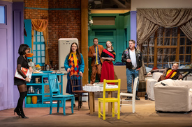 A darab ugyanis – már a plakátjával is – a kilencvenes évek egyik népszerű amerikai szituációs komédiáját, a Jóbarátok című tévésorozatot idézi, amelyet 1994 és 2004 között forgattak az Egyesült Államokban, és volt idő, amikor hazánkban is különösen népszerű volt.