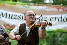 Csík János hegedül a Mezzo zenekarral közösen adott koncertjén a Muzsikál az erdõ – Mátrai Mûvészeti Napok rendezvényen Pásztó Mátrakeresztes településrészén 2020. július 8-án.