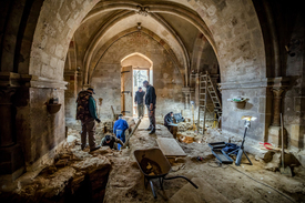 – Az 1930-as években a XIII. század közepéről származó falképek megmentése volt hazánk egyik első, modern értelemben vett restaurálási munkája, amit Mauro Pellicioli végzett. Az épület újabb restaurálásának szükségessége a nyolcvanas évek végén merült fel, leginkább a főkapu apostolgalériájának állapota miatt. A rendszerváltás során számos akadály hátráltatta a munkát, a támogatások is csak lassan csordogáltak, így a nívós régészeti és művészettörténeti munka ellenére alapvető stratégiai problémákat, mint például a talajnedvesség okozta károk, nem volt lehetőség orvosolni – magyarázza Sarkadi Márton. A templomdombon a X.-től a XVIII. századig temetkeztek, ennek műszaki következményei is vannak: a talajnedvesség szerves eredetű bomlástermékeket is szállít, ami igencsak kikezdte az épület kőanyagait.