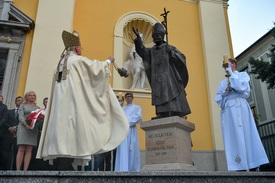 A székesegyház előtt felállított szobrot Ternyák Csaba egri érsek áldotta meg.