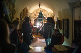 A közel kétórás villaséta a kertben kezdődik, ahol először a ház történetével ismerkedhetünk meg. Innen járjuk be aztán a hatalmas épület négy szintjét az egykor menekülteket rejtő alagsortól kezdve egészen a tetőteraszon megbúvó manzárdszobáig.