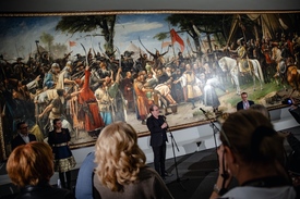 – A trilógia első darabja, a Krisztus Pilátus előtt azonban nem készült el az 1881-es párizsi Szalon tavaszi bemutatójára, ezért Munkácsy haladékot kért, de nem kapott. Utólag talán mondhatjuk, hogy szerencsére. Hiszen Sedelmeyer így a saját palotájának kerti pavilonjában, színpadi körülmények között állította ki a 25 négyzetméteres festményt, ami a látogatókat gyakorlatilag beszippantotta, a Krisztus elítélését követelő tömeg részévé tette. A mű olyan szenzációt keltett, hogy csak Sedelmeyernél mintegy 300 ezer ember tekintette meg, ezzel pedig egyértelművé vált, hogy miként a Miltont, ezt is körbe kell utaztatni Európán. A festmény megjárta többek között Amszterdamot, Stockholmot, Londont, Párizst, Bécset és természetesen Budapestet is, a korabeli statisztikák szerint az út során összesen mintegy kétmillióan látták. A folytatás tehát egyértelmű volt, 1884-re készült el a keresztre feszítés legdrámaibb jelenete, a Golgota, amellyel Munkácsy a sikert tulajdonképpen megduplázta – vázolja a kurátor Munkácsy nemzetközi sikertörténetének legfontosabb állomásait.
