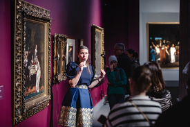 – Mindeközben azonban – bár az Éjjeli csavargók című képéért újabb aranyéremmel tüntette ki a párizsi Szalon – a Siralomház sikerét nem tudta megismételni, így lázasan kereste azt a témát, amellyel újra komoly elismerésre tehet szert. Fontos fordulópontot jelentett az életében az 1878-ban festett Milton, amely azt a pillanatot ábrázolja, amikor a vak költő a lányainak diktálja az Elveszett paradicsom című művét. A kép festése közben Munkácsy nemcsak a művészet mibenlétéről gondolkodott, hanem az alkotás folyamata, annak pszichológiája is foglalkoztatta – mondja Krasznai Réka hozzátéve, hogy a Milton nemcsak a párizsi világkiállítás nagy aranyérmét hozta el a festőnek, de azt a kizárólagos szerződést is, amelyet tíz évre kötött Sedelmeyerrel.