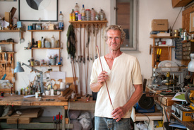 – Összetartó közösségbe kerültem, és bár a következő években keresztül-kasul bejártam Európát, olyannyira megszerettem a magyar kultúrát, a nyelvet, hogy nem volt kérdés: ide költözöm. Ferivel közösen megvettük ezt a házat, berendeztük a műhelyt. Később az emeletet is felújítottam, itt élek a családommal – meséli Etzler Bernd. A főiskolán vizsgahangszerként hegedűt készített, és bár jól sikerült, mégsem érezte száz százalékig magáénak ezt a mesterséget. Az iskolában Sáli Géza azonban beavatta a vonókészítés rejtelmeibe – ez a munka pedig sokkal jobban a kezére állt, mint a hegedűkészítés.
