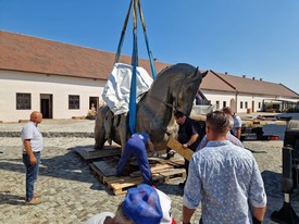 Zatykó Gyula, a polgármesteri hivatal magyar ügyekért felelős tanácsosa az MTI-nek elmondta, hogy a lovasszobrot darabokban vitték be a vár területére, egészben ugyanis nem fért volna be a szűk középkori kapun. Elmondta: az avatás időpontjáról a szobor tulajdonosaként a püspökség az önkormányzattal egyeztetve dönt.
