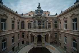 Ónodi Géza mérnök elmondta, hogy az épületegyüttes annak idején is két részre tagolódott, a Múzeum utca felőli rész lakófunkciót látott el, valamint reprezentatív eseményeknek adott otthont, míg a Reviczky utcai szárny istálló és kiszolgálóépületeket foglalt magába. A kivitelezés során előkerültek az üvegbevilágító plafon egyedülálló eredeti acélszerkezete mellett 140 éves burkolatok, tapétadarabok és díszítő festések, valamint korabeli gépészeti elemek is.
