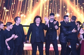 A győztes Titán együttes tagjai az Éjféli járat című dalért kapott díjjal A Dal 2023 televíziós show-műsor döntőjében a Médiaszolgáltatás-támogató és Vagyonkezelő Alap (MTVA) óbudai stúdiójában 2023. április 29-én.