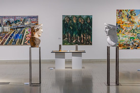 A kérdésekre persze az egyes alkotók különféle stílusú művekkel próbálnak választ adni, amelyek képzőművészet-elméleti szempontból talán annyira nem illenek össze, de éppen ez az izgalmas kaotikusság bizonyítja, hogy kizárólagosan jó megoldás nem létezik. Gál András minden felesleges látványelemtől megfosztó monokróm képei jól megférnek Palkó Tibor Meztelen Máriája mellett, mint ahogyan a modern építészet struktúráinak egészen bizarr megjelenítése sem kerül feltétlen ellentmondásba a terem szakrális elemeivel vagy éppen Dorogi János japán fametszetek szerkezetét idéző gömbszerű formájával. A kétkedés csendje ugyanakkor nemcsak a művészekből, de belőlünk, látogatókból is többféle reakciót válthat ki. Van, aki a szemlélődés biztonságos magányába vonul vissza, de olyan is, aki inkább a látványban és a külvilág jelenségeiben való tobzódás élményét választja. Van, aki némán bezárkózik, megint más őrjöngve kapálódzik és küzd a végsőkig. A tárlat második terme, a Gesztus vagy kiáltás inkább a második habitusra fókuszál, a benne látható művek a felszínre törő indulatot fejezik ki.