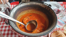 A Pikec beltere hangulatos, rusztikus és vendégmarasztaló, a Duna ott folyik el az ablak alatt. Halászlé két adagtól rendelhető, ennek ára 1800 dinár, nagyjából ötezer forint. Ez nem kevés, viszont a végeredmény kiváló, és akár hárman is jóllakhatnak belőle. Az étel jellegzetessége, hogy erős lángon, lobogó vízben főzik, friss halat és kiváló paprikát használnak, így aztán finom, koncentrált, selymes levet kapnak. A halhús persze túlfő, mint a dunai halászlé esetében általában, de azért marad valami az élvezeti értékéből.