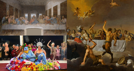 Aztán később az az értelmezés kapott szárnyra, hogy az alkotók valójában nem Leonardo da Vinci alkotására reflektáltak, hanem egy kevéssé ismert holland festő, Jan Harmensz van Bijlert az Istenek ünnepe című festményére asszociáltak a megnyitós jelenetükkel.