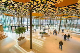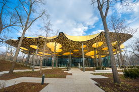 Néhány évvel ezelőtt még a lepusztult Hungexpo-irodaházak csúfították el a Városligetben a Műjégpálya és a Vajdahunyad vára melletti parkrészt. Ami azóta a 2018-ban indult és az idén decemberben befejeződött építkezés eredményeképpen a Sou Fujimoto tervezte ikonikus épülettel gazdagodott. A természetbe elegánsan belesimuló épület nem csak kívülről törekszik a park zöldje és az épített terek közti határok vizuális feloldására, ez az élmény belülről is éppolyan intenzív. Az épület jókora, vízszintes szerkezeti osztás nélküli homlokzati üvegfalainak köszönhetően áttetsző, légies hatást kelt, aminek talán leglátványosabb eleme a koncertterem. Itt olyan érzése van az embernek, mintha a liget fái alatt ülne: a színpad mögött nem statikus díszlet, hanem a természet mozgalmassága, a park égbe nyúló fái és persze a Vajdahunyad várának romantikus látképe tárul a koncertközönség szeme elé. Egy üvegfalú koncertterem meglehetősen rendhagyó építészeti ötlet, nem csoda, ha a tökéletes akusztika megteremtése a tervező és a kivitelező számára is óriási kihívás volt. A feladat megoldására a Nagata Acoustics vállalkozott, ami a Magyar Zene Házáé előtt olyan intézmények akusztikáját tervezte, mint a Philharmonie de Paris vagy a szentpétervári Marinszkij Színház koncertterme.